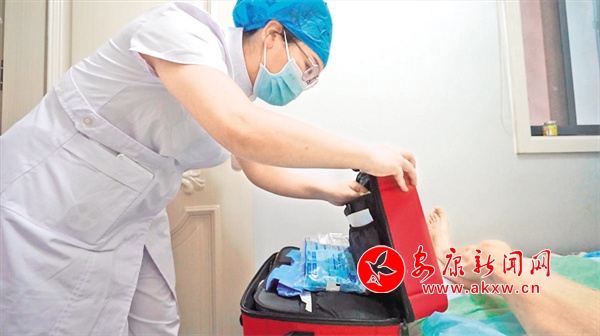 短短幾分鐘時間就替代了以往要往返醫(yī)院一個多小時的工作,60歲的樊阿姨在這項(xiàng)“訂單護(hù)理”工作中切身感受到了方便。