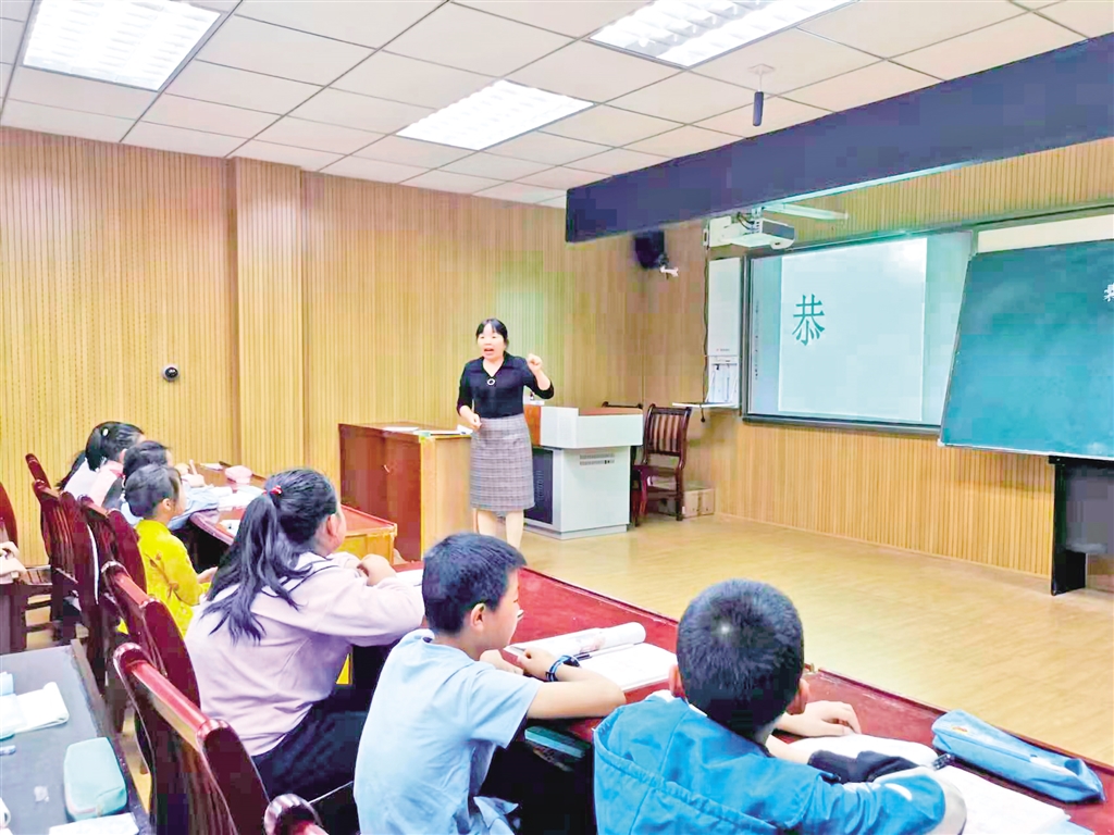 張遠(yuǎn)琴帶領(lǐng)學(xué)生學(xué)習(xí)傳統(tǒng)文化