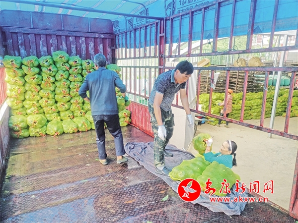 險灘村村民將貝貝南瓜裝車