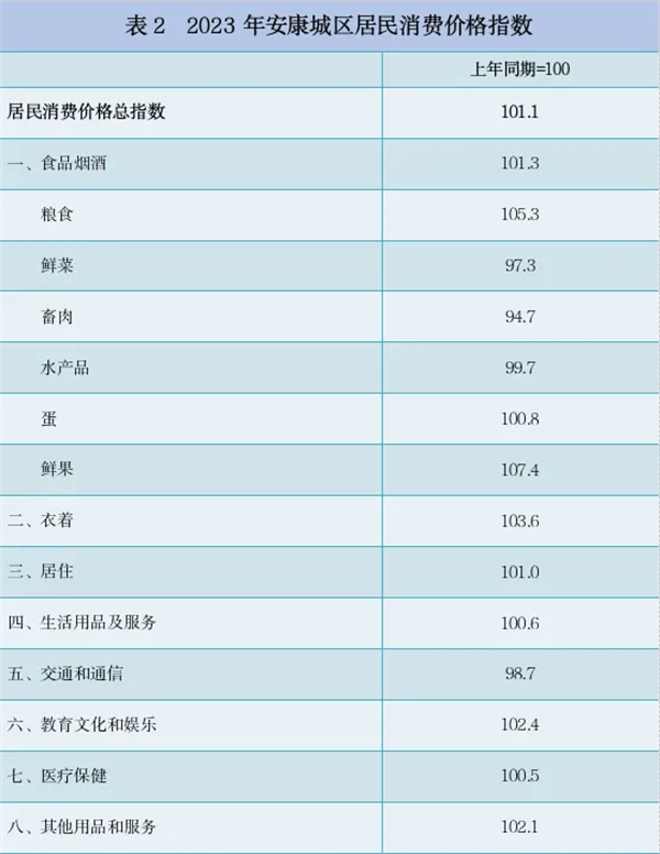 2023年,安康城區(qū)居民消費(fèi)價(jià)格比上年上漲1.1%。