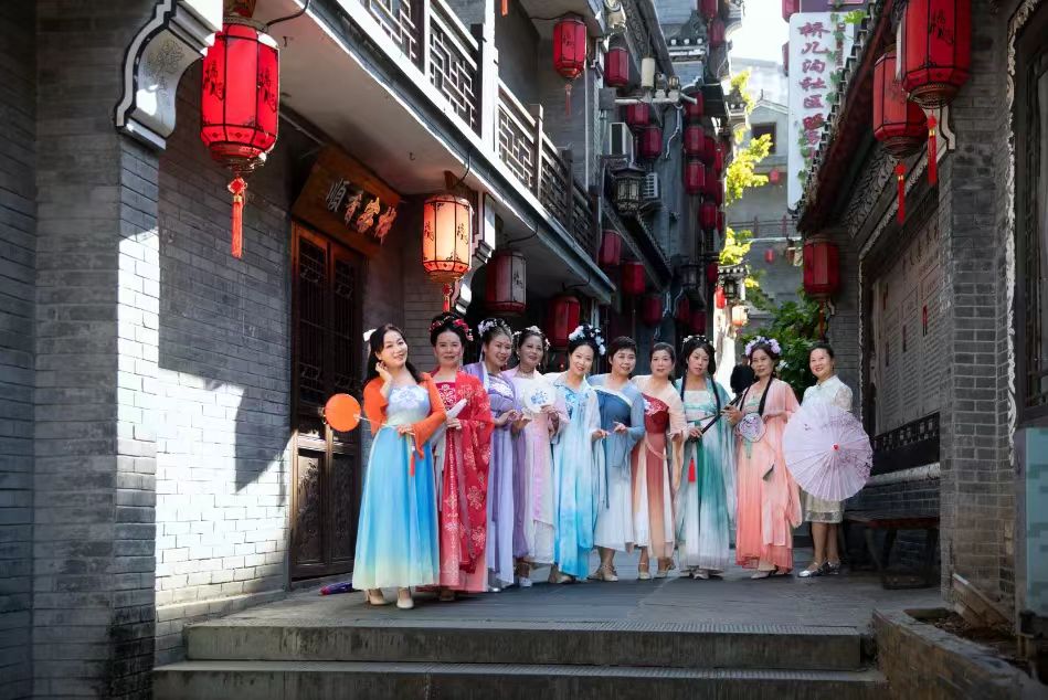 橋兒溝景區(qū):10月2日,在橋兒溝街區(qū),一場漢服快閃秀活動(dòng)在這里精彩上演,吸引大批游客隨著巡游隊(duì)伍暢游最美古街,充分展示了傳統(tǒng)服飾的文化魅力。