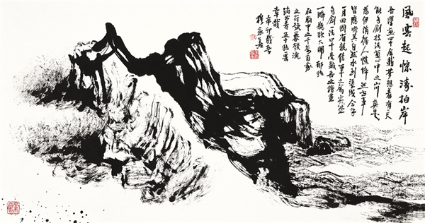 此畫法不僅突破了自己的繪畫瓶頸,還大大拓展了中國畫創(chuàng)作的疆界,將傳統(tǒng)中國山水畫與當(dāng)代山水畫連接起來。次年,他的焦墨山水畫《石韻圖》就被收入高等教育“十二五”全國規(guī)劃教材/中國重點(diǎn)美術(shù)學(xué)院系列教材《山水畫教程》。