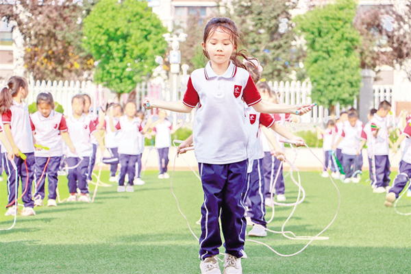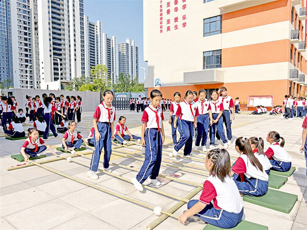 這所建校僅一年多的學(xué)校,通過創(chuàng)新構(gòu)建“138+X”體育活動體系,讓體教融合從理念走向?qū)嵺`。“‘1’是每天10分鐘眼保健操,‘3’是30分鐘體育課,‘8’是80分鐘大課間,‘X’則是清晨微鍛煉和社團(tuán)活動。”該校體育教研組組長陳波介紹道,“通過科學(xué)規(guī)劃,我們確保每個孩子每天都能享受2小時的運(yùn)動時光。”這一體系的設(shè)計,正是對中共中央、國務(wù)院提出的“中小學(xué)生每天綜合體育活動時間不低于2小時”要求的創(chuàng)新落實,也體現(xiàn)了學(xué)校對“健康第一”教育理念的深刻理解。