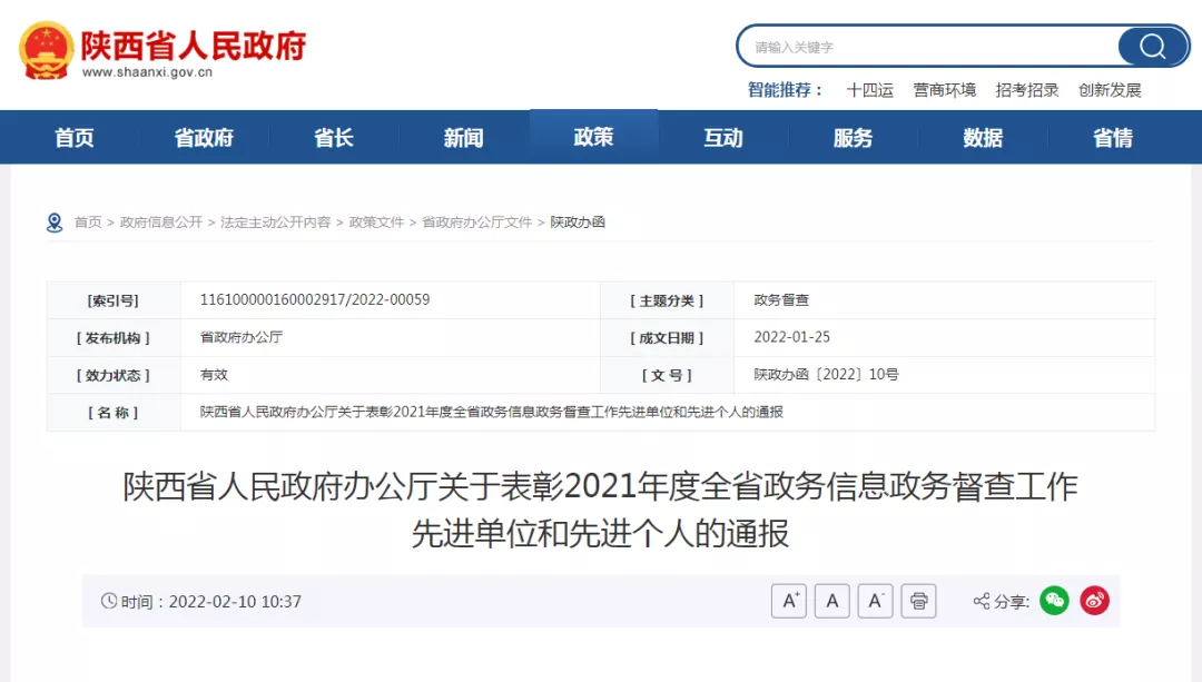近日,省政府辦公廳印發(fā)《關(guān)于表彰2021年度全省政務(wù)信息政務(wù)督查工作先進(jìn)單位和先進(jìn)個人的通報》。安康市人民政府辦公室(市政府督查室)、漢陰縣人民政府辦公室……