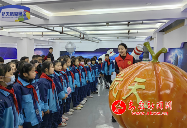 在講解員的帶領(lǐng)下,同學(xué)們有序進(jìn)入一樓展廳,先后參觀了機(jī)器人展區(qū)、健康生活展區(qū)、航空航天展區(qū)等。