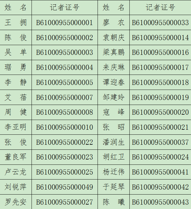 為進(jìn)一步規(guī)范新聞采訪秩序,堅(jiān)決打擊假記者、假媒體、假記者站、假網(wǎng)站和新聞敲詐行為,維護(hù)新聞媒體權(quán)威和新聞?dòng)浾邫?quán)益,為加快建設(shè)西北生態(tài)經(jīng)濟(jì)強(qiáng)市營(yíng)造良好輿論環(huán)境,現(xiàn)將經(jīng)省委網(wǎng)信辦、省新聞出版廣電局批準(zhǔn)設(shè)立的省級(jí)媒體駐安康記者站、省級(jí)新聞網(wǎng)站安康頻道、市級(jí)新聞單位及持證記者名單予以公布。
