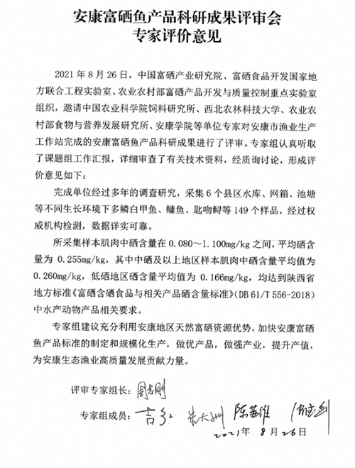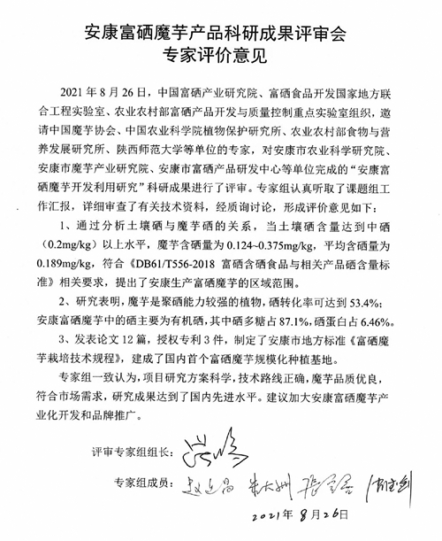 本次評(píng)審中,專家組認(rèn)真聽取了課題組工作匯報(bào),詳細(xì)審查了有關(guān)技術(shù)資料,經(jīng)質(zhì)詢討論后一致認(rèn)為:四大富硒特色產(chǎn)業(yè)課題研發(fā)方案科學(xué)、技術(shù)路線合理,研究成果達(dá)到國內(nèi)先進(jìn)水平,天然富硒是安康得天獨(dú)厚的資源優(yōu)勢(shì),培育開發(fā)出的產(chǎn)品品質(zhì)優(yōu)良,符合市場(chǎng)需求。建議充分利用安康地區(qū)天然富硒資源優(yōu)勢(shì),加快富硒特色產(chǎn)業(yè)標(biāo)準(zhǔn)的制定和規(guī);a(chǎn),做優(yōu)產(chǎn)品、做強(qiáng)產(chǎn)業(yè)、提升產(chǎn)值,加大該產(chǎn)品的產(chǎn)業(yè)化開發(fā)和品牌推廣力度,促進(jìn)產(chǎn)業(yè)提質(zhì)增效。