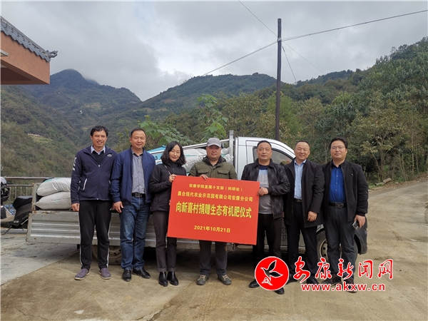 本網(wǎng)訊(通訊員 李景林)10月21日,安康學(xué)院科研處聯(lián)合晨合現(xiàn)代農(nóng)業(yè)示范園有限公司安康分公司向嵐皋縣民主鎮(zhèn)新喜村捐贈(zèng)生態(tài)有機(jī)肥,并建立“綠潤(rùn)有機(jī)肥獼猴桃生態(tài)種植示范基地”。
