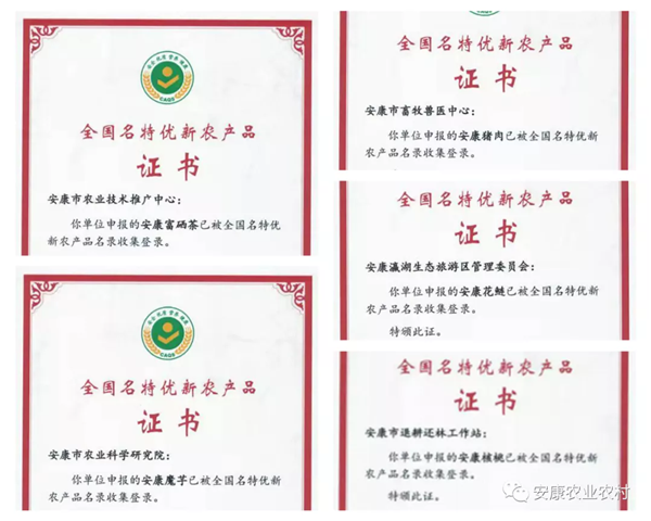 我市圍繞農(nóng)業(yè)五大特色產(chǎn)業(yè),加快建立標準體系、質(zhì)量體系和品牌體系。“安康豬”“安康錢魚”“安康花鰱”等三個農(nóng)產(chǎn)品獲國家農(nóng)產(chǎn)品地理標志登記。“安康富硒茶”上榜100個以地理標志為代表的區(qū)域公用品牌,成為唯一入選的陜茶品牌,并入選獲評最具經(jīng)營力茶葉公用品牌,品牌價值35.16億元,排名全國第20,陜西第一。“安康漢水魚”成為陜西唯一一個水產(chǎn)品區(qū)域公用品牌。“安康富硒茶”“安康魔芋”等五個農(nóng)產(chǎn)品入選2021年首批全國名特優(yōu)新農(nóng)產(chǎn)品名錄。2021年,全市新獲得“兩品一標”農(nóng)產(chǎn)品認證45個,其中綠色食品認證32個、有機農(nóng)產(chǎn)品10個、地理標志農(nóng)產(chǎn)品3個,全國名特優(yōu)新農(nóng)產(chǎn)品8個。