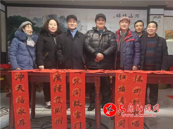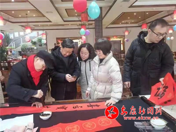本網(wǎng)訊(通訊員 田虹)瑞雪紛飛,臘月尤寒。自1月20日至26日,安康市延安精神研究會(huì)組織部分會(huì)員采取集寫分送或分寫集送的方式,先后為安康市亦合安企業(yè)管理有限公司、平利縣新立人力資源管理公司、嵐皋縣瀛湖漢源漁業(yè)公司等會(huì)員單位及職工,神河鎮(zhèn)敬老院及街道社區(qū)群眾送春聯(lián)送溫暖。一幅幅鮮紅的楹聯(lián)為即將來臨的虎年春節(jié)增添了濃濃暖意。