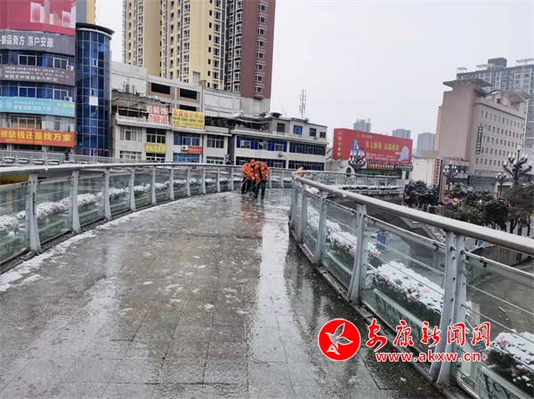 據(jù)了解,7日清晨,安康市市政園林處共投入人力40余人,融雪劑3噸,車輛10臺(tái),對城區(qū)雷神殿、馬坎天橋、漢江一橋、三橋、南環(huán)干道陳家溝大橋及部分公園集中開展除雪融冰工作。