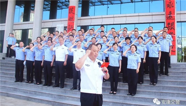 活動(dòng)中,全體黨員民輔警面向黨旗,莊重舉起右拳,重溫入黨誓詞,用錚錚誓言表達(dá)對(duì)黨的無(wú)限忠誠(chéng)和為黨和人民事業(yè)奮斗終身的決心。參加活動(dòng)的全體黨員民輔警滿懷深情齊聲合唱《沒(méi)有共產(chǎn)黨就沒(méi)有新中國(guó)》《中國(guó)人民警察警歌》等歌曲,抒發(fā)了對(duì)黨的無(wú)限熱愛(ài),歌頌在黨的領(lǐng)導(dǎo)下,安康公安交警隊(duì)伍奮進(jìn)新時(shí)代、砥礪新征程的良好精神風(fēng)貌。