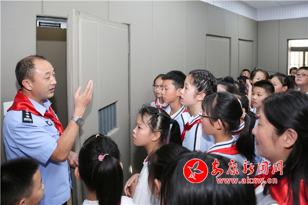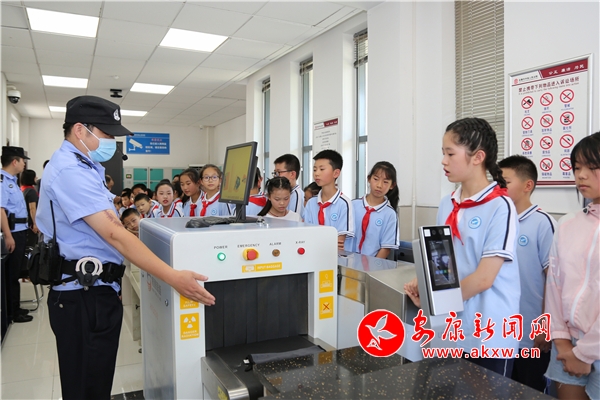 同學(xué)們?cè)诜ň瘞ьI(lǐng)下,依次經(jīng)過安檢門。更讓同學(xué)們好奇的是法警小哥的警用裝備,同學(xué)們認(rèn)真聆聽法警對(duì)每樣警用裝備的講解,還不時(shí)發(fā)問,興趣盎然。隨后,同學(xué)們依次參觀了法庭、羈押室和全國維護(hù)婦女兒童權(quán)益先進(jìn)集體工作室,對(duì)法庭開庭審理案件、羈押犯罪嫌疑人和保護(hù)婦女兒童權(quán)益等知識(shí)有了更深入的認(rèn)識(shí)和了解。