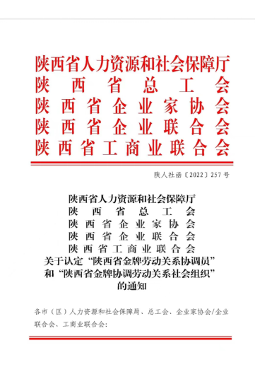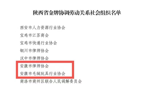 本網(wǎng)訊(通訊員 陳莉)2022年,省協(xié)調(diào)勞動(dòng)關(guān)系三方委員會(huì)在全省范圍內(nèi)廣泛開展“陜西省金牌勞動(dòng)關(guān)系協(xié)調(diào)員”“陜西省金牌協(xié)調(diào)勞動(dòng)關(guān)系社會(huì)組織”評選活動(dòng)。經(jīng)層層推薦、好中選優(yōu),我市白河縣金龍建材有限公司李東波、高新技術(shù)產(chǎn)業(yè)開發(fā)區(qū)創(chuàng)業(yè)就業(yè)服務(wù)局陳軍等12名同志被認(rèn)定為“陜西省金牌勞動(dòng)關(guān)系協(xié)調(diào)員”,安康市律師協(xié)會(huì)、安康市毛絨玩具行業(yè)協(xié)會(huì)被認(rèn)定為“陜西省金牌協(xié)調(diào)勞動(dòng)關(guān)系社會(huì)組織”。