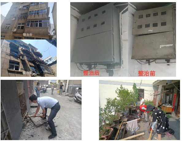 第二工作組牽頭對(duì)省糧農(nóng)安康直屬庫家屬院私搭亂建進(jìn)行了專項(xiàng)整治,拆除違章建筑1處,私建臺(tái)階6處、廢棄水井1處,安裝共享充電樁6個(gè),樓道燈15盞、修復(fù)破損地面100平方米,清運(yùn)垃圾4車。