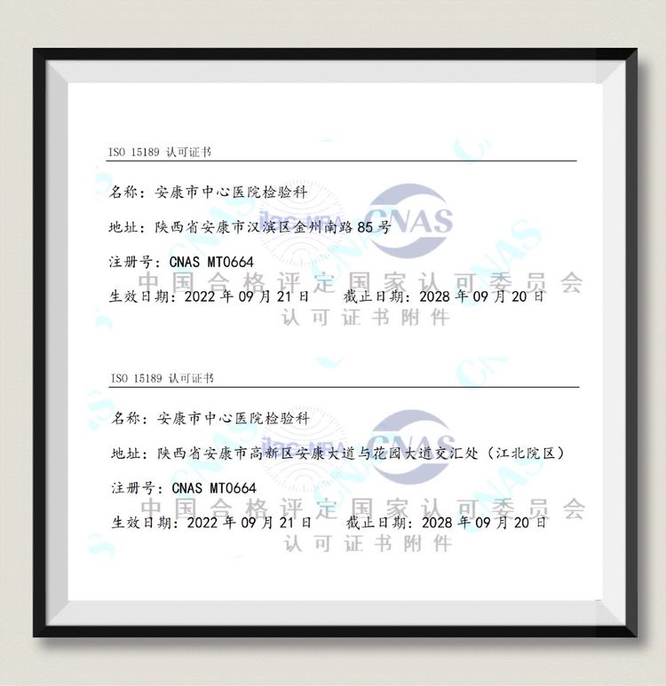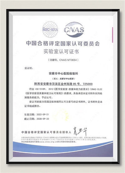 2022年6月24日-26日,由中國合格評定國家認可委員會(CNAS)委派的八名評審專家經(jīng)過為期三天的“線上+線下”綜合評審,安康市中心醫(yī)院檢驗科順利通過ISO15189現(xiàn)場評審。針對評審專家提出的不符合項,經(jīng)過兩個月整改及持續(xù)改進,安康市中心醫(yī)院檢驗科得到了國家認可委(CNAS)的正式認可,并獲得證書。