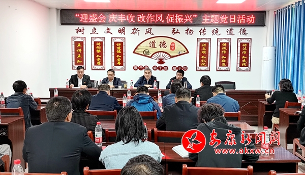 在七里村黨群活動(dòng)中心,全體與會(huì)黨員面對(duì)鮮紅的黨旗,莊嚴(yán)宣誓,重溫入黨誓詞;預(yù)備黨員進(jìn)行入黨宣誓,對(duì)黨組織表明決心;筒車灣鎮(zhèn)和七里村負(fù)責(zé)人介紹了村情村貌、建設(shè)規(guī)劃及鞏固銜接工作情況;三名脫貧群眾代表分享脫貧致富故事;部機(jī)關(guān)四名黨員干部就產(chǎn)業(yè)發(fā)展、鄉(xiāng)村振興、鄉(xiāng)風(fēng)文明、為民服務(wù)等方面開展宣傳宣講。