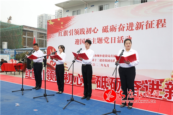 上午9時,活動在莊嚴(yán)的升旗儀式中拉開序幕,伴隨著《義勇軍進行曲》慷慨激昂的旋律,鮮艷的五星紅旗冉冉升起。在場全體人員面向國旗行注目禮,齊唱國歌,共同祝福偉大祖國更加繁榮昌盛。升旗儀式結(jié)束后,在活動現(xiàn)場,開展了紅色朗誦《我的祖國》,市住建局向陜建十二建集團捐贈“紅色”書籍。同時,市住建局工作人員進行了《建設(shè)工程項目管理規(guī)范》《建筑施工現(xiàn)場環(huán)境與衛(wèi)生標(biāo)準(zhǔn)》《 建筑施工高處作業(yè)安全技術(shù)規(guī)范》等城市建設(shè)及建筑行業(yè)規(guī)范宣講。活動最后,全體人員合唱《我和我的祖國》,激昂的歌聲將活動推向了高潮。