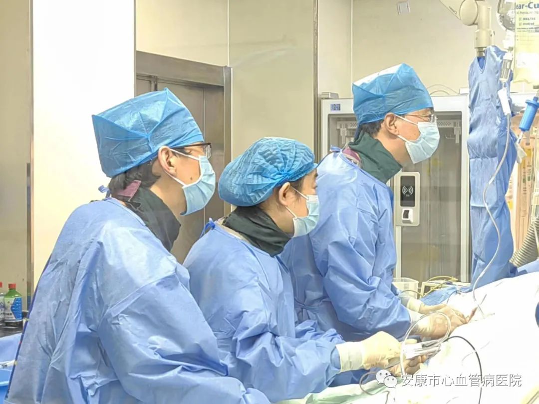 守正創(chuàng)新是引領(lǐng)醫(yī)院高質(zhì)量發(fā)展的動力和源泉。在院領(lǐng)導的重視和支持下,心血管內(nèi)科診療新技術(shù)不斷涌現(xiàn),形成了“院有重點、科有特色、人有專長”的良好格局。2022年安康市中心醫(yī)院心血管內(nèi)科共開展了11項新技術(shù),包括雙腔無導線起搏器(AV)置入術(shù)、心腔內(nèi)超聲、caFFR應用于PCI治療、冠脈旋磨聯(lián)合沖擊波球囊碎石手術(shù)、ECOM支持下冠脈雙支重度鈣化旋磨介入治療、局麻下極簡式左心耳封堵術(shù)、左側(cè)髂內(nèi)巨大動脈瘤帶膜支架腔內(nèi)隔絕術(shù)及分支血管栓塞術(shù)、經(jīng)皮主動脈瓣介入換瓣手術(shù)(TAVR)、腸系膜動脈栓塞介入治療、Lacbes左心耳封堵器封堵術(shù)、獨立開展TAVR手術(shù),填補了安康市心血管病診療的多項空白。其中,雙腔無導線起搏器在全省率先開展,獨立開展TAVR手術(shù)、冠脈旋磨聯(lián)合沖擊波球囊碎石手術(shù)更是躋身省內(nèi)領(lǐng)先水平。