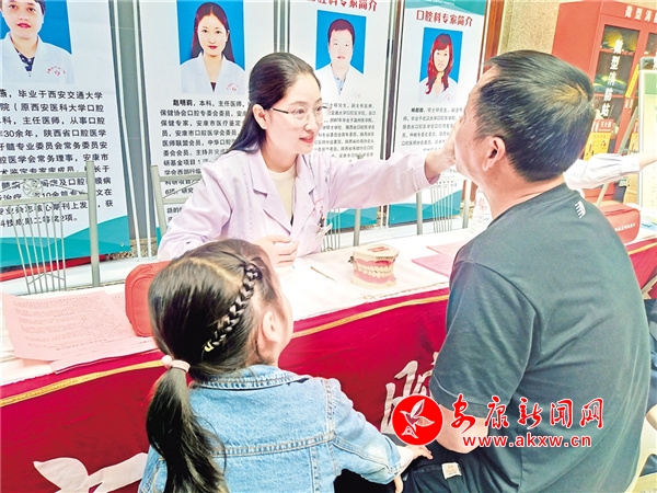 2022年9月19日,在九三學(xué)社的組織安排下,趙明莉來到漢濱區(qū)培新小學(xué),為學(xué)生們開展愛牙日科普宣傳活動(dòng)。在診室,她是嚴(yán)謹(jǐn)專業(yè)的口腔科醫(yī)生,在講臺(tái)上,她是親切耐心的科普老師。她用生動(dòng)的語言和豐富的案例為孩子們上了一堂口腔健康課,贏得了陣陣掌聲。而類似這樣的活動(dòng),她常常參與,哪怕是到偏遠(yuǎn)的山村,哪怕翻山越嶺,乘車數(shù)小時(shí),只要有需要,她便第一時(shí)間報(bào)名。她說,活動(dòng)形式不重要,重要的是能起到實(shí)實(shí)在在的效果。