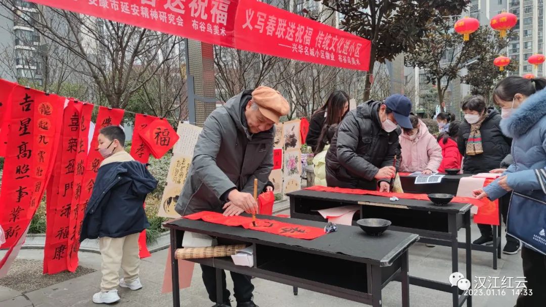 在春節(jié)即將來臨之際,為營造歡樂喜慶、書畫飄香的節(jié)日氛圍,1月16日,安康市延安精神研究會、安康市退役軍人書畫院、安康市興華小區(qū)物業(yè)、安康市布谷鳥美術(shù)聯(lián)合開展了“共駐共建育童心 廉潔清風(fēng)沐成長”為主題的義寫春聯(lián)活動,為群眾送上新春祝福。