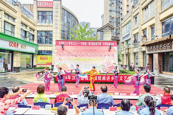 9月12日,漢濱區(qū)江北街道后張嶺社區(qū)在山水嶺居小區(qū)舉辦“中秋佳節(jié)情意濃,文明風(fēng)尚萬家揚”活動。活動由居民自己創(chuàng)意進行文采、繪畫展示。(胡建波 攝)