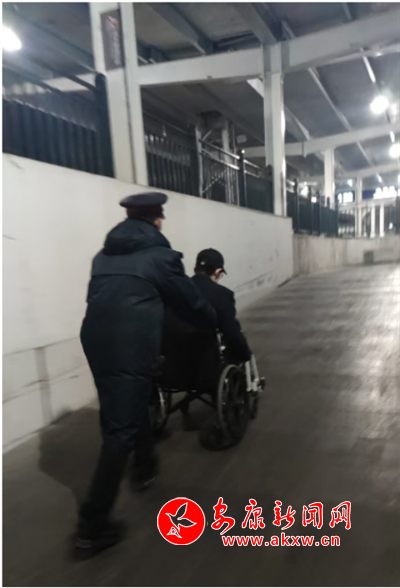 當(dāng)T248次列車抵達(dá)安康后,為了照顧陳先生下車,列車長與安康站工作人員提前協(xié)調(diào),列車?空九_后。列車員扶著陳先生下車,列車長已經(jīng)和安康站工作人員推著輪椅等候在12車門口,安康站工作人員一路用輪椅推著陳先生,并將陳先生送至出租車,叮囑出租車司機(jī)將陳先生及家人安全送到家。