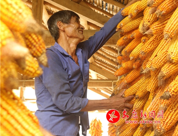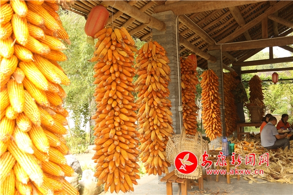 辛勞了大半年的村民,面對(duì)掛滿(mǎn)庭院的金色玉米,掩不住內(nèi)心豐收的喜悅和滿(mǎn)意的笑容。