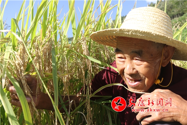 “稻花香里說豐年”。桂花村2組許道生老人,今年雖已87歲高齡,卻精神矍鑠,常年為了家里 “一畝三分地”而辛勤勞作。78歲的老伴很是心疼,在照顧他生活起居的同時,還關(guān)顧著孫子,膝下一兒兩女都忙各自的事,生活也很充實。面對豐收,老人喜不自禁,自述他種的兩畝水田保守估產(chǎn)將達3000多斤,用他的話說:“這可是我們嵐皋最好的米,過去還是貢米吶。”