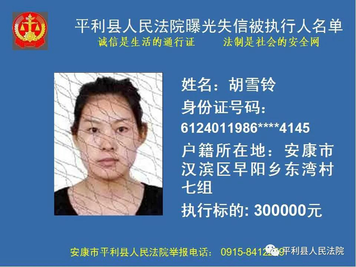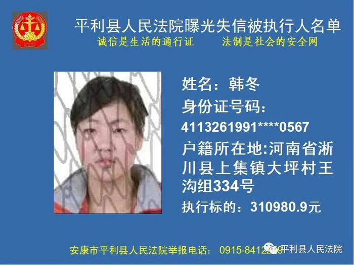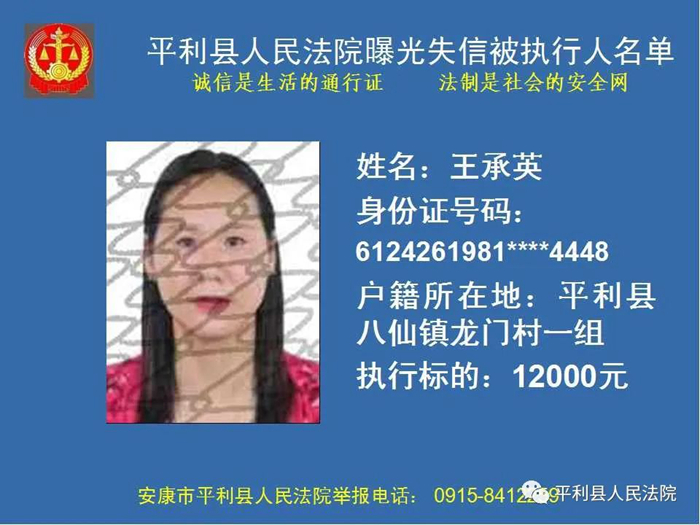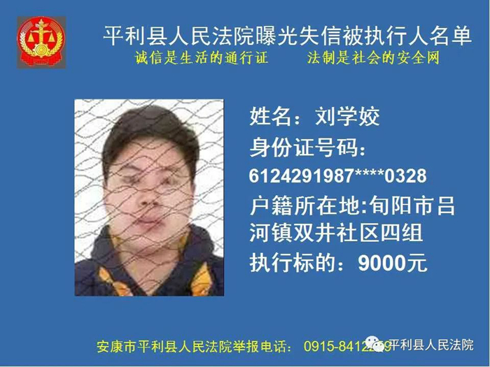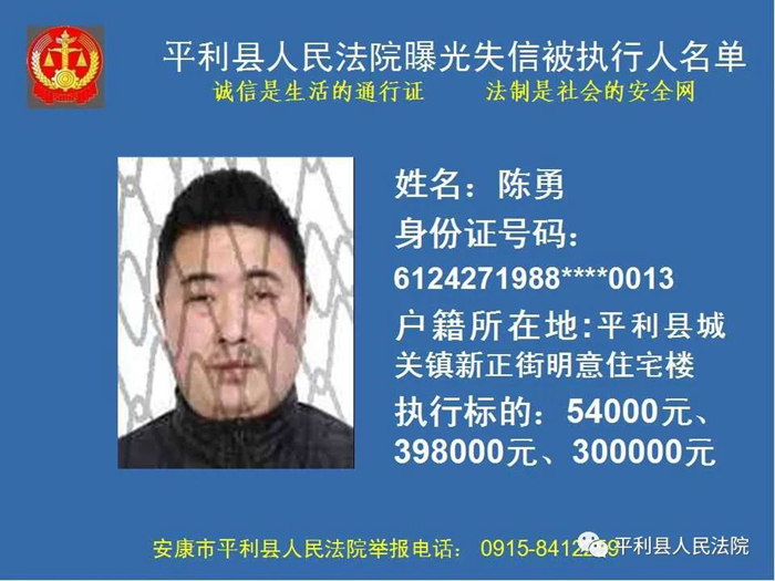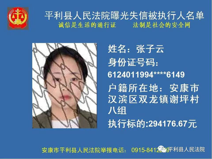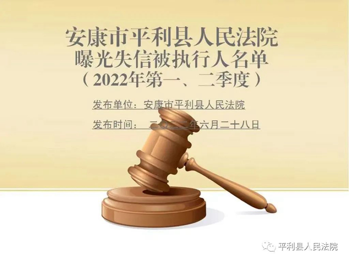 曝光失信 | 平利縣人民法院曝光失信被執(zhí)行人名單(2022年第一、二季度)