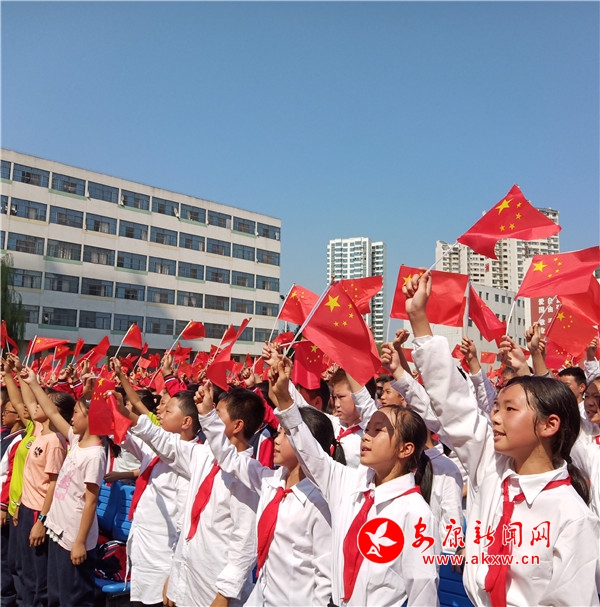 初二九班的王運(yùn)城作為此次活動(dòng)中的旗手,他說:“今天,能站在這里我感到很自豪,明天就是祖國母親的生日,我們?cè)诖双I(xiàn)歌,祝愿祖國母親永遠(yuǎn)繁榮昌盛。”