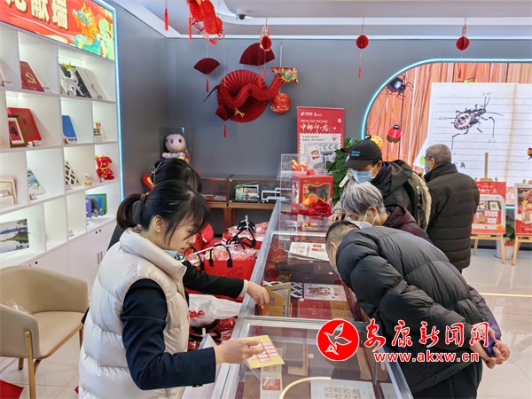 在本次郵票發(fā)行之際,安康郵政分公司將金州路郵政支局創(chuàng)新打造為全國首家“龍年生肖+毛玩文創(chuàng)”主題郵局,全面展示生肖“龍”文創(chuàng)產(chǎn)品,郵票、郵品、生肖貴金屬、生肖毛玩等,讓客戶一站式體驗(yàn)購買到心儀的禮物;顒(dòng)儀式結(jié)束后,與會(huì)嘉賓們來到全國首家“龍年生肖+毛玩文創(chuàng)”主題郵局參觀打卡,互動(dòng)體驗(yàn)。