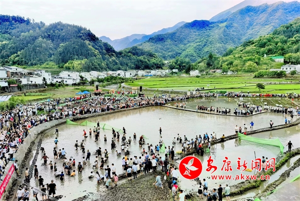 活動現(xiàn)場,人群熙攘,氣氛熱烈,宣讀人恭頌插秧祭文后,開秧門、迎田水儀式莊重舉行,寓意著新一年的農(nóng)耕生活正式開啟。儀式結束后,插秧比賽、拔河比賽、挑擔子接力賽、捉鴨子抓稻魚等一系列豐富多彩的農(nóng)事活動陸續(xù)展開,吸引了眾多游客和當?shù)卮迕駸崆閰⑴c,插秧比賽的環(huán)節(jié)中,參賽者們身著傳統(tǒng)農(nóng)裝,腳踏泥濘田地,隨著裁判的一聲令下,參賽者們迅速彎腰,雙手熟練地抓取秧苗,準確地將秧苗插入泥土中,不一會,一株株綠油油的秧苗,便整齊而有序地立在田地。隨后的捉鴨子抓稻魚活動,更是將現(xiàn)場的氣氛推向高潮,田邊的游客們紛紛下田捉鴨捕魚,體驗鄉(xiāng)村生活的樂趣,一時間現(xiàn)場笑聲不斷,氣氛歡樂祥和,構成了一幅生動的山水田園畫卷。