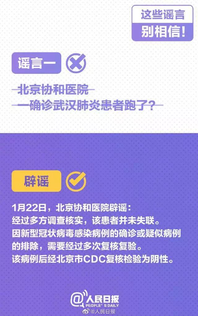 北京協(xié)和醫(yī)院一確診武漢肺炎患者跑了?武漢市衛(wèi)健委副主任感染后被隔離?成都男子經(jīng)武漢停留10分鐘被感染新型冠狀病毒?新型冠狀病毒感染的肺炎引發(fā)關(guān)注,與之同樣贏得“關(guān)注”的還有不少謠言。戳圖了解不信謠,不傳謠!轉(zhuǎn)擴!
