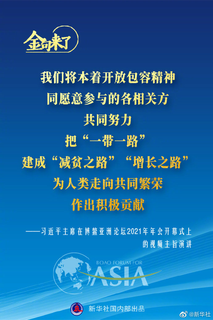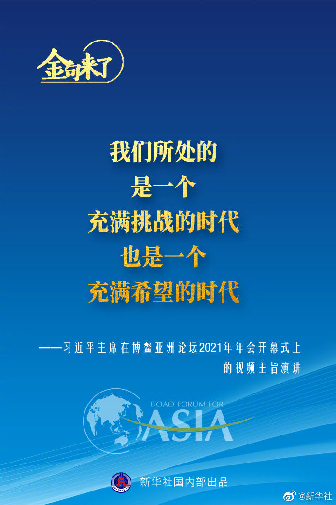 4月20日,習(xí)近平主席在博鰲亞洲論壇2021年年會(huì)開(kāi)幕式上以視頻方式發(fā)表主旨演講。一起來(lái)看演講金句! JDu安康新聞網(wǎng)