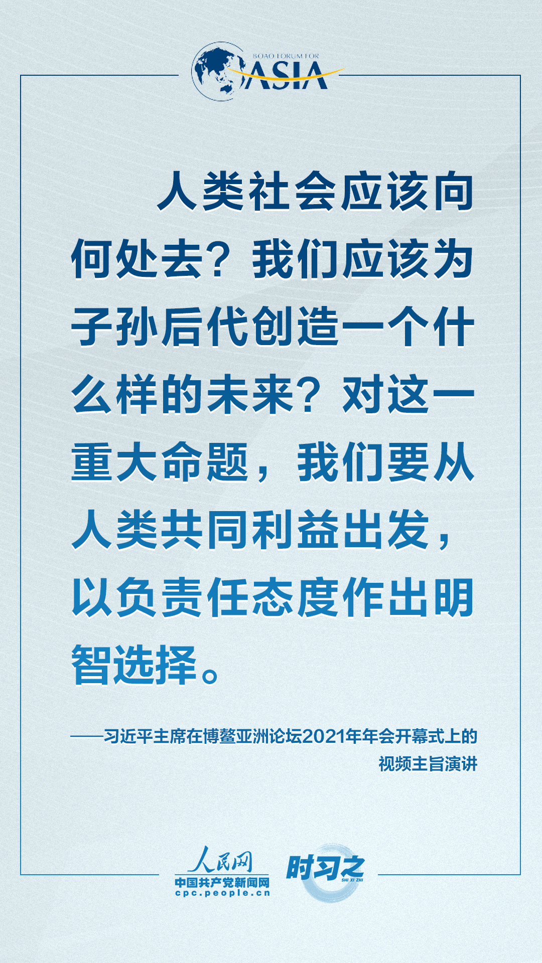 4月20日上午,博鰲亞洲論壇2021年年會開幕式在海南博鰲舉行,國家主席習近平以視頻方式發(fā)表題為《同舟共濟克時艱,命運與共創(chuàng)未來》的主旨演講。面對“人類社會應(yīng)該向何處去?我們應(yīng)該為子孫后代創(chuàng)造一個什么樣的未來?”的重大命題,習近平這樣對世界說。qTz安康新聞網(wǎng)