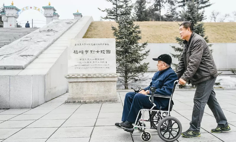 徐振明是吉林省通化市革命烈士陵園管理所首任所長,現(xiàn)年96歲。他先后參加過抗日戰(zhàn)爭、解放戰(zhàn)爭,1950年參加抗美援朝戰(zhàn)爭,曾榮立多次戰(zhàn)功。他退伍轉(zhuǎn)業(yè)到楊靖宇烈士陵園工作,父子兩代默默守護(hù)英雄陵墓60余年,身體力行保護(hù)革命遺跡,講述英雄故事,弘揚革命精神。圖為徐振明(左)和兒子徐永軍來到楊靖宇烈士陵園。 新華社記者 王昊飛/攝