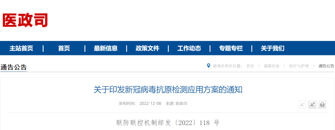 為進(jìn)一步優(yōu)化新冠病毒檢測(cè)策略,做好防控工作,國務(wù)院應(yīng)對(duì)新型冠狀病毒肺炎疫情聯(lián)防聯(lián)控機(jī)制綜合組制定了《新冠病毒抗原檢測(cè)應(yīng)用方案》,現(xiàn)印發(fā)給你們,請(qǐng)認(rèn)真組織實(shí)施。