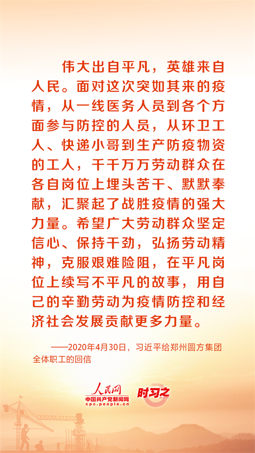 人民創(chuàng)造歷史,勞動(dòng)開創(chuàng)未來。黨的十八大以來,習(xí)近平總書記始終心系全國廣大勞動(dòng)者,激勵(lì)廣大勞動(dòng)者在平凡崗位上續(xù)寫不平凡的故事。在“五一”國際勞動(dòng)節(jié)到來之際,讓我們重溫總書記的諄諄話語,用辛勤勞動(dòng)為經(jīng)濟(jì)社會(huì)發(fā)展貢獻(xiàn)力量。FeR安康新聞網(wǎng)