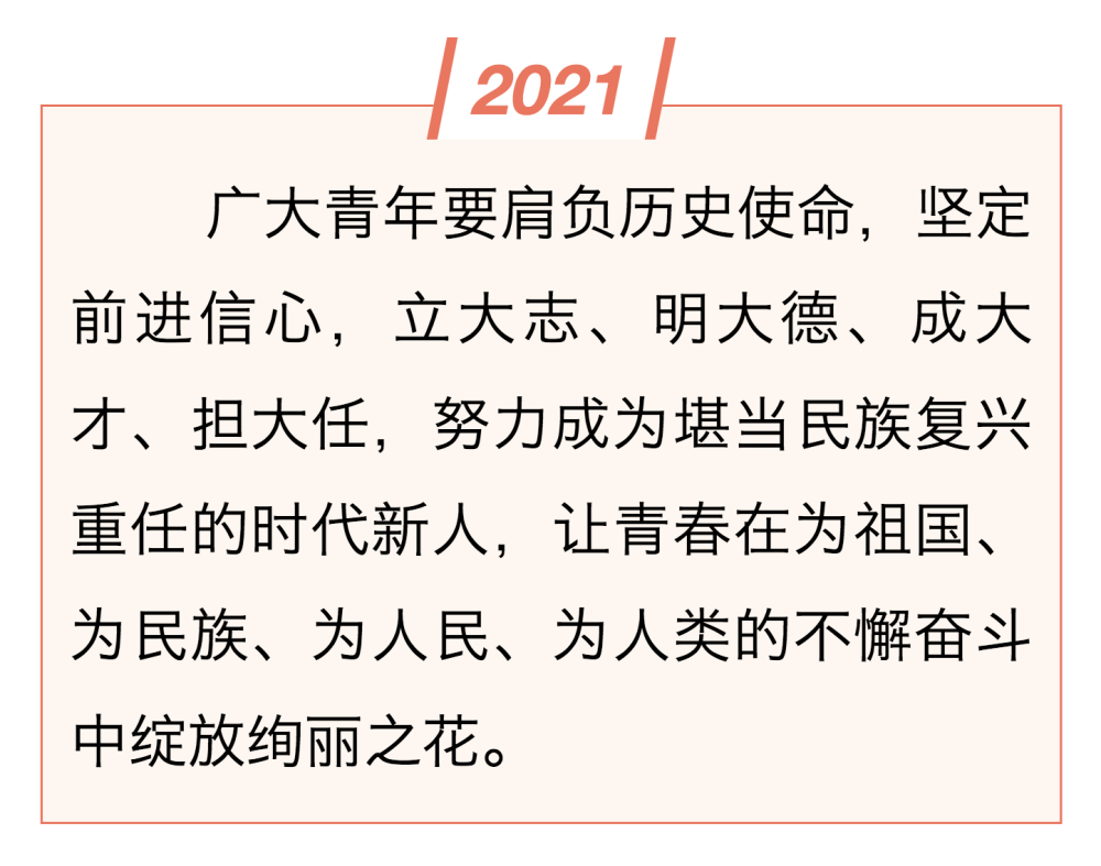 新時(shí)代新征程,中國(guó)青年將牢記總書記囑托,激揚(yáng)奮斗青春,擔(dān)當(dāng)時(shí)代重任,讓青春年華在奮斗與奉獻(xiàn)中煥發(fā)出絢麗光彩。