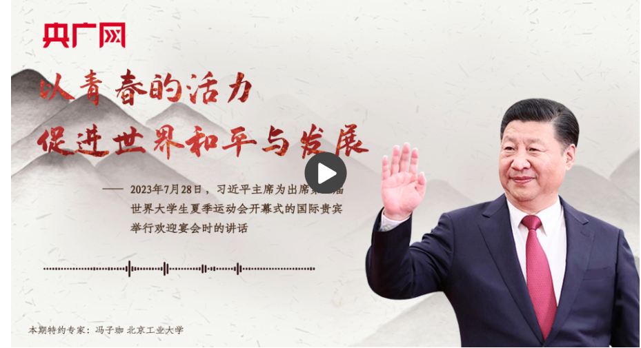 習近平:我們要攜手世界青年,以青春的活力促進世界和平與發(fā)展,把成都大運會辦成一屆具有中國特色、時代氣息、青春風采的國際體育盛會,讓來自世界各地的青年朋友因成都大運會相聚相知,增進理解,為促進人類進步事業(yè)提供新動力。
