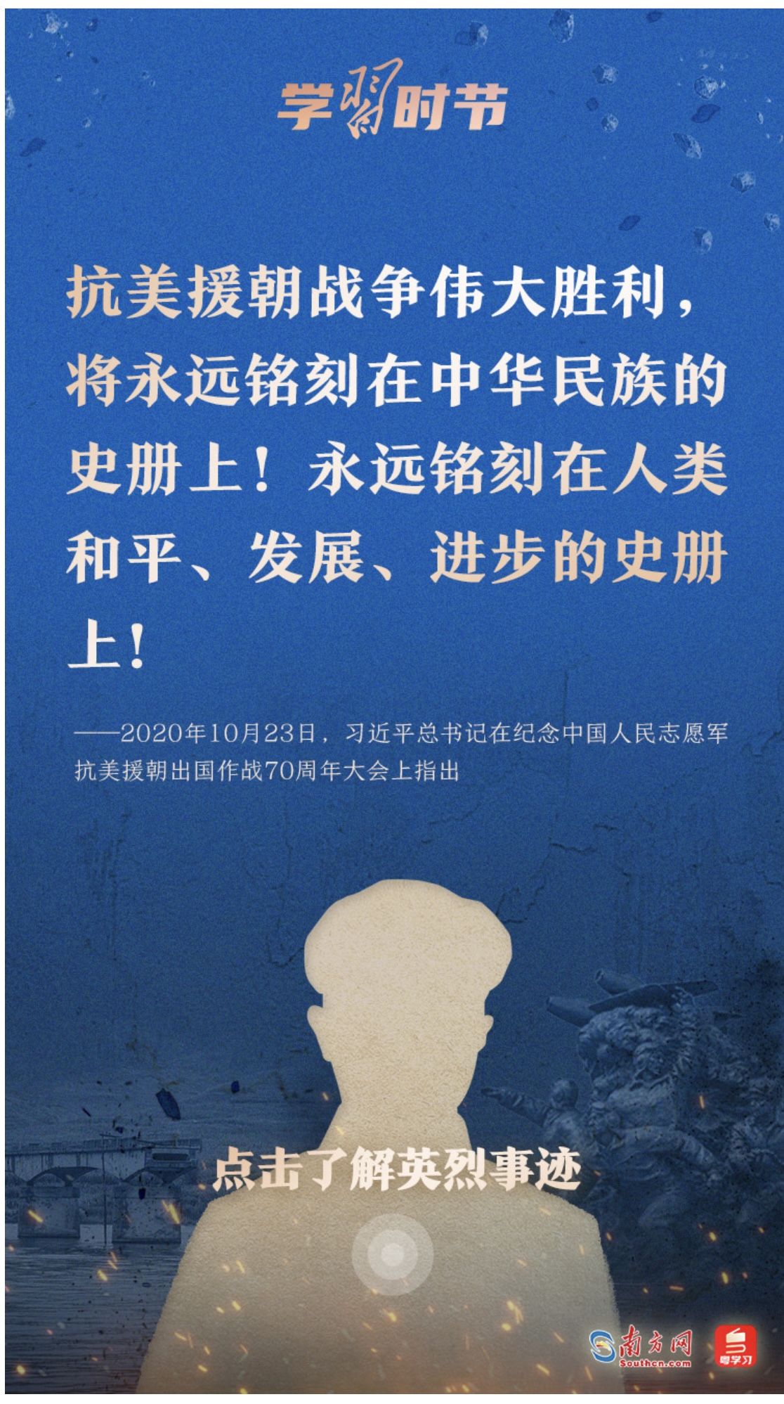 今天,讓我們一起學(xué)習(xí)習(xí)近平總書記的重要論述,永續(xù)傳承偉大抗美援朝精神。勿忘歷史,不負(fù)英魂!銘記過往,繼續(xù)前行!