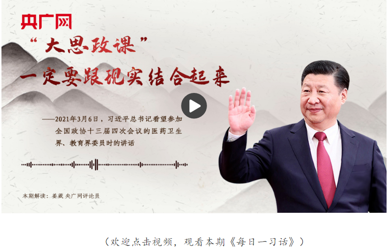 這句話出自2021年3月6日習(xí)近平總書記看望參加全國政協(xié)十三屆四次會(huì)議的醫(yī)藥衛(wèi)生界、教育界委員時(shí)的講話。