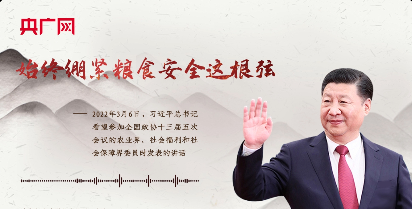 習(xí)近平:要未雨綢繆,始終繃緊糧食安全這根弦,始終堅(jiān)持以我為主、立足國內(nèi)、確保產(chǎn)能、適度進(jìn)口、科技支撐。