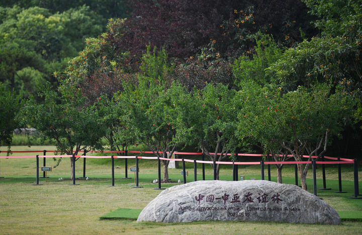 這是2025年5月29日拍攝的位于陜西西安的中國(guó)-中亞友誼林。新華社記者 張博文 攝