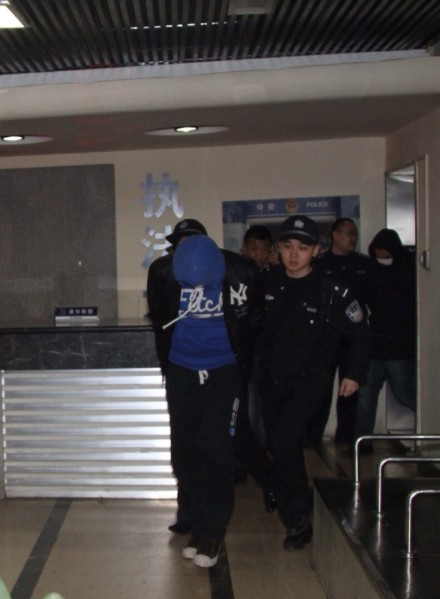 李代沫戴手銬離開派出所 被移送至朝陽分局