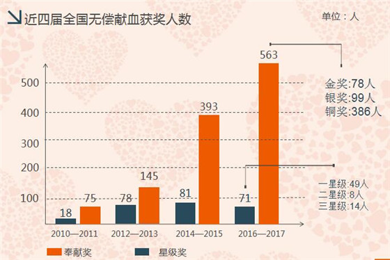 4、我市全國無償獻血奉獻獎獲獎人數(shù)創(chuàng)歷史新高