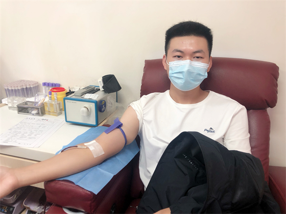 獻(xiàn)完血的王波靜靜地坐在一邊休息,這個(gè)剛滿(mǎn)十八歲的大一新生還略顯青澀,前天他已經(jīng)來(lái)過(guò)一次,但因?yàn)檠愿邲](méi)獻(xiàn)成血,休息了兩天后,他趕在今天回學(xué)校前完成了這個(gè)心愿。王波平時(shí)喜歡看書(shū)和跑步,話(huà)也不多,離開(kāi)前他問(wèn)工作人員,下次寒假回來(lái)是不是可以獻(xiàn)第二次血。在得到“捐獻(xiàn)全血間隔時(shí)間不夠半年,但可以試試捐獻(xiàn)機(jī)采血小板”的答復(fù)后,王波睜大眼睛使勁點(diǎn)了點(diǎn)頭,又給自己定下了一個(gè)新目標(biāo)。