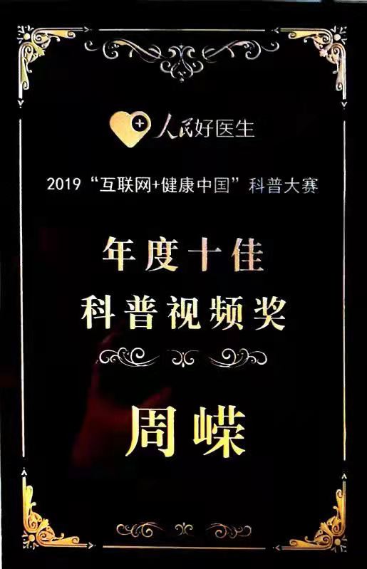 2021年 獲醫(yī)生云獎;獲“科普紅人直播賽十強(qiáng)”稱號