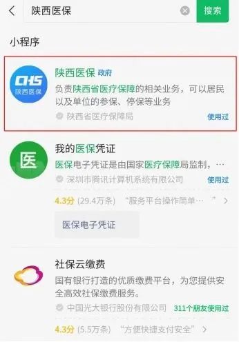 (2)小程序:微信/支付寶搜索陜西醫(yī)保小程序